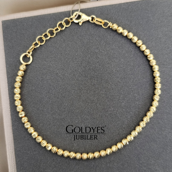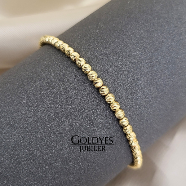 srebrna pozłacana bransoletka z diamentowanymi kulkami