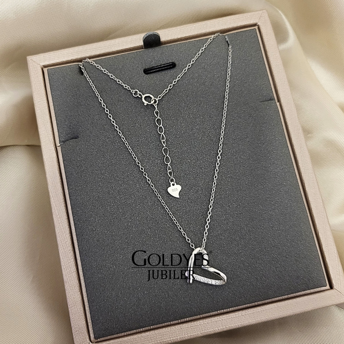 Srebrny łańcuszek naszyjnik z sercem