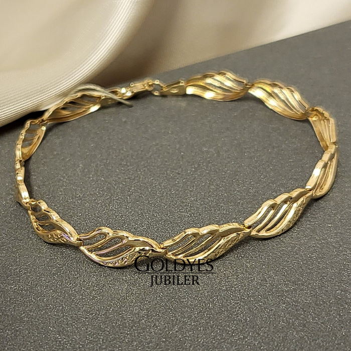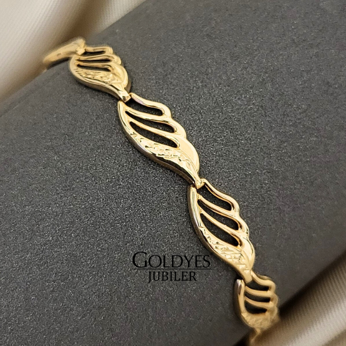 Złota bransoletka listki ażurowe elementowa