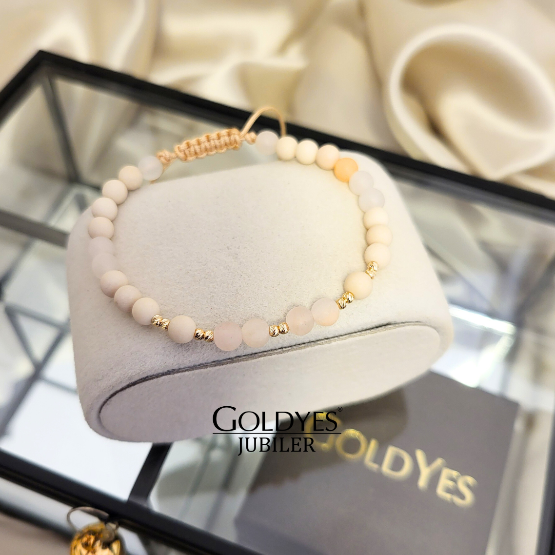 Złota bransoletka na sznureczku z diamentowanymi kuleczkami z kamieniem Awenturyn