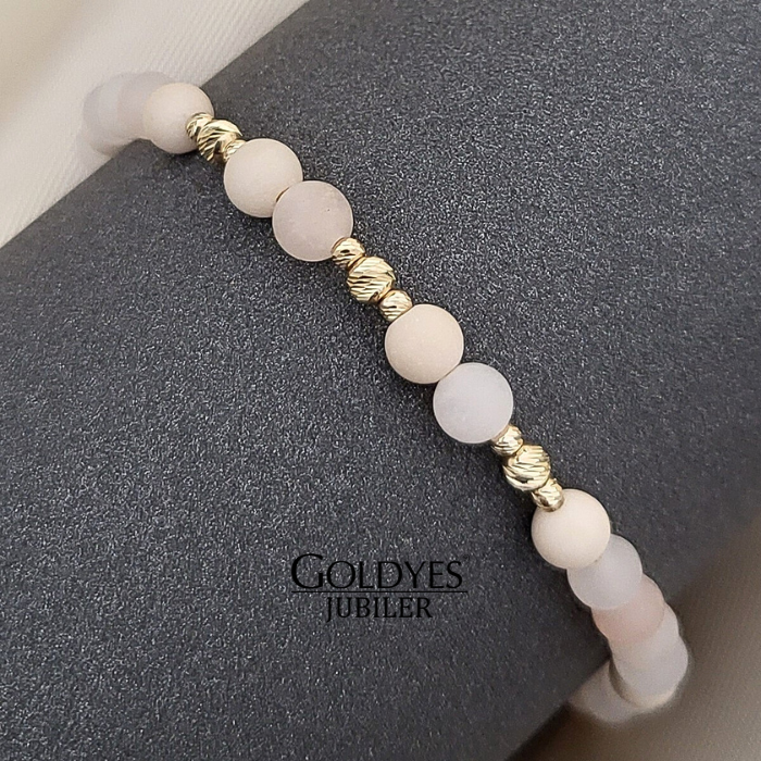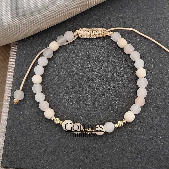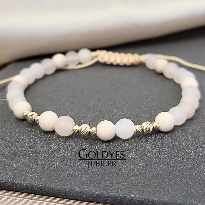 Złota bransoletka na sznureczku z diamentowanymi kuleczkami z kamieniem Awenturyn