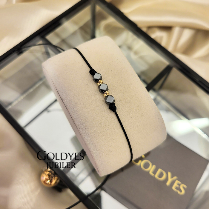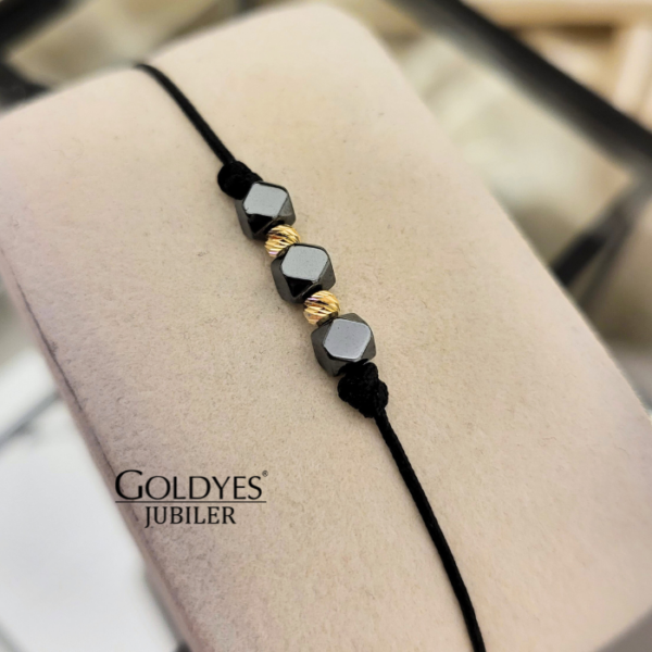 Złota bransoletka na sznureczku z hematytem