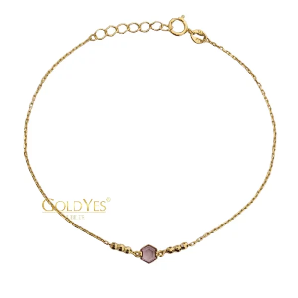 Złota bransoletka z fioletową cyrkonią próba złota 585