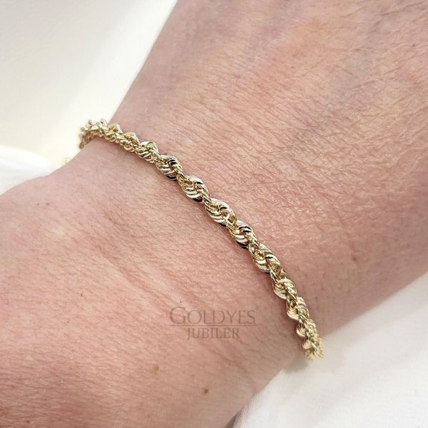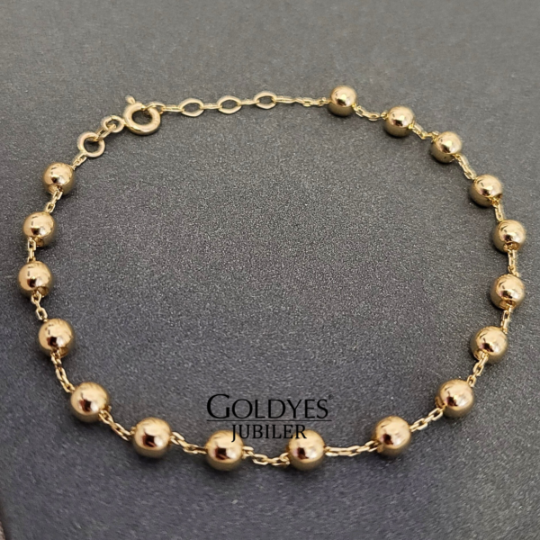 Złota damska bransoletka z krzyżykiem i diamentowanymi kuleczkami