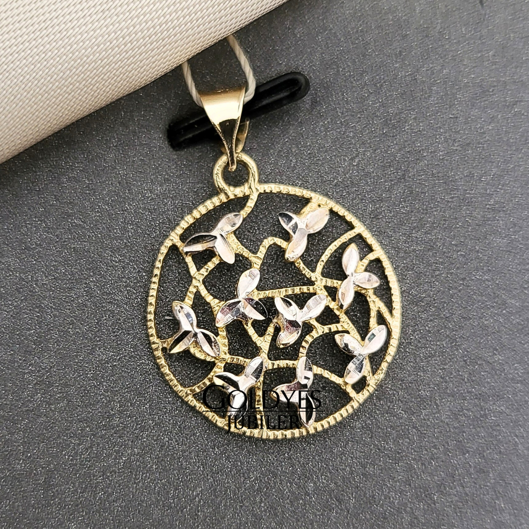 Złota zawieszka dwukolorowa KWIATY