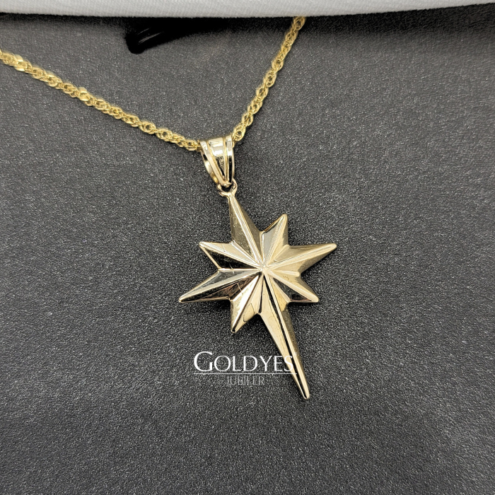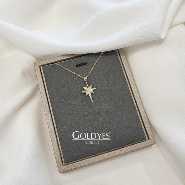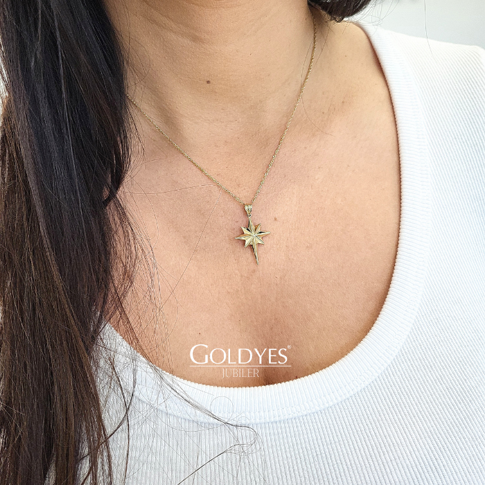 Złota zawieszka gwiazda wykonana z próby złota 585. Idealna ozdoba dla osób ceniących subtelny i elegancki design.