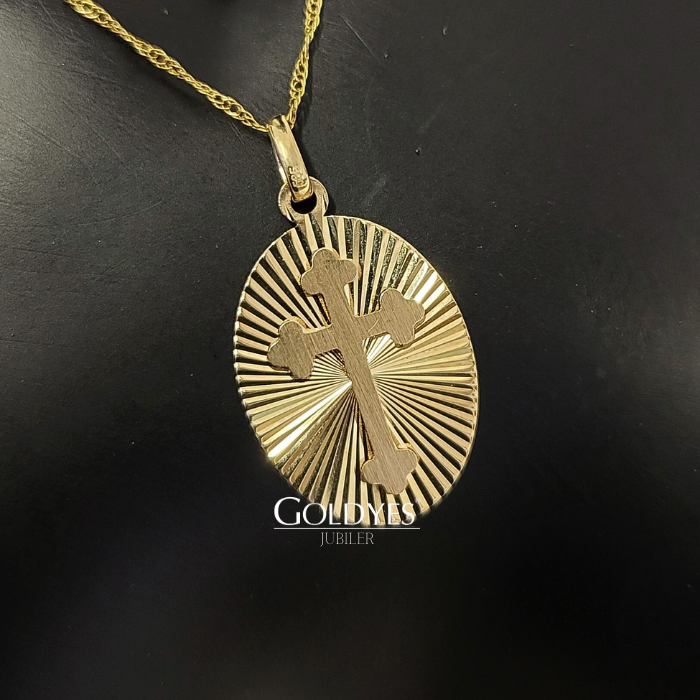 Zawieszka krzyżyk wykonana z 585 złota. Elegancki dodatek do każdego stroju, doskonały prezent dla bliskiej osoby. Produkt nowy.