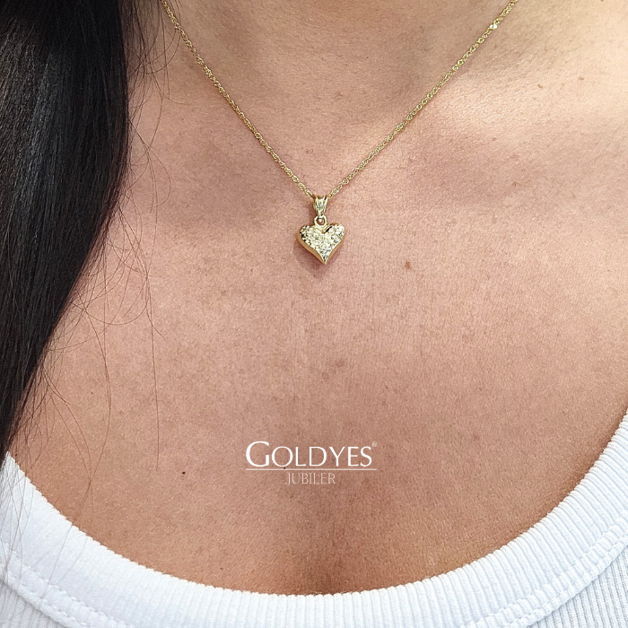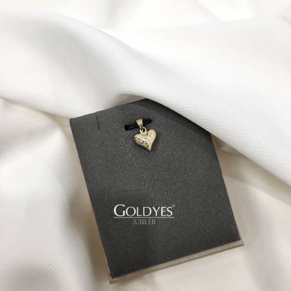 Złota zawieszka serce diamentowane wykonana z próby złota 585. Idealna ozdoba dla osób ceniących subtelny i elegancki design.