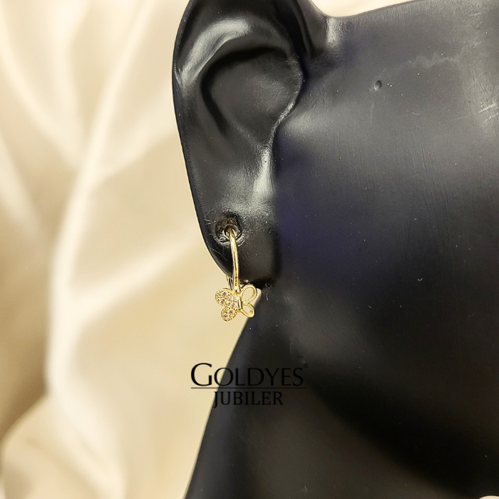 Złote kolczyki dziecięce motylki dla dziewczynki