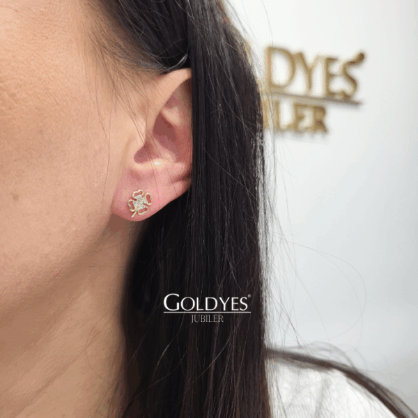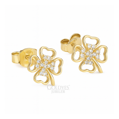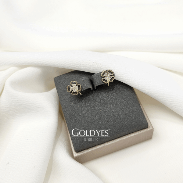 Złote kolczyki koniczynka z cyrkoniami wykonane z 585 złota. Idealne dla kobiet, które cenią sobie elegancję i subtelność w dodatkach do swojej stylizacji.