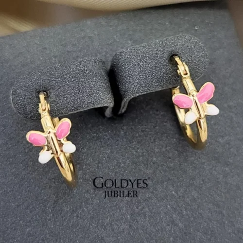 Złote kolczyki kółka motylki