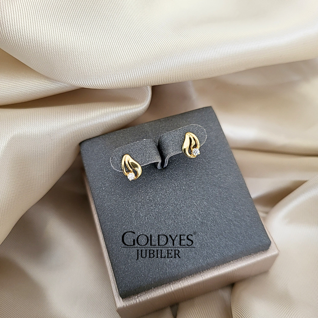 Złote kolczyki w kształcie kropli wykonane z próby złota 585 (14k). Wyjątkowy dodatek do każdej stylizacji, subtelny, ale elegancki. Idealne na wieczorne wyjścia i specjalne okazje.