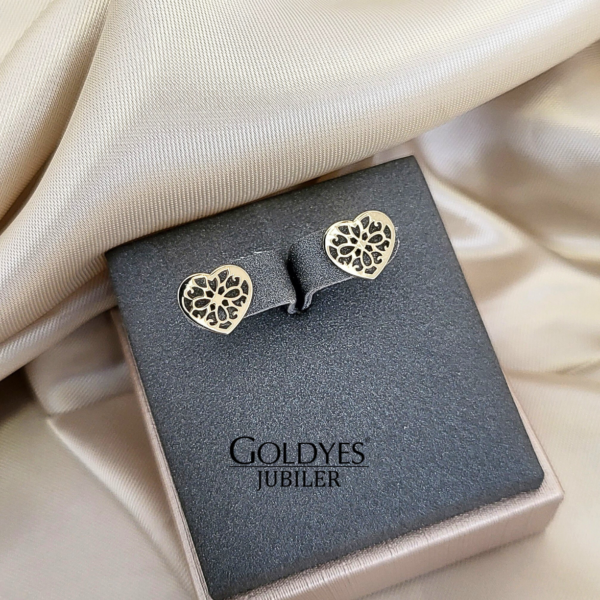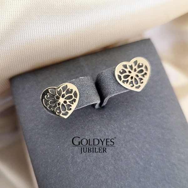 Złote kolczyki w kształcie serca wykonane z ażurowego złota o próbie 585 (14k). Delikatny i elegancki design sprawia, że są idealnym dodatkiem do każdej stylizacji. Doskonały wybór dla miłośniczek biżuterii złotej.