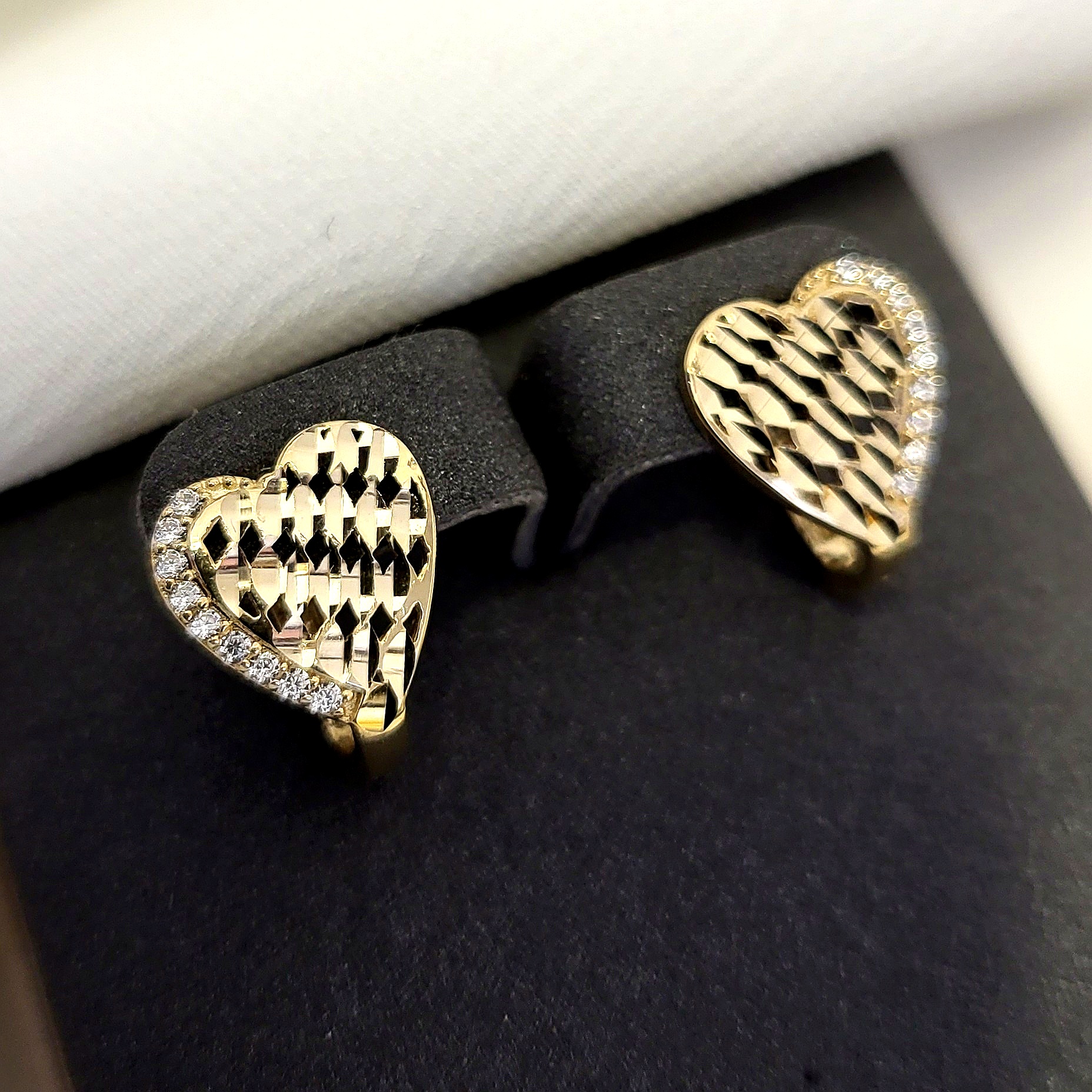 Złote kolczyki damskie SERCA diamentowane z cyrkoniami