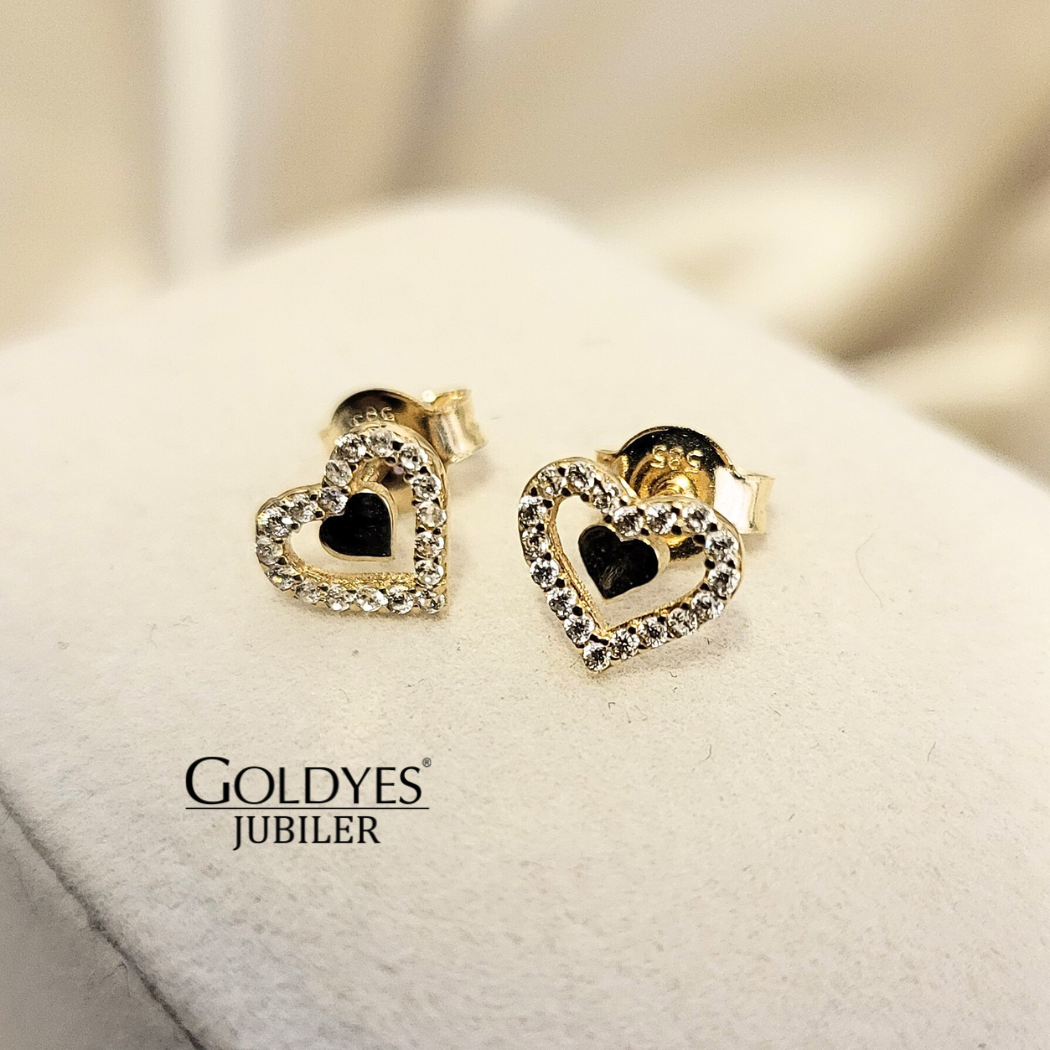 Złote kolczyki damskie SERCA Z CYRKONIAMI