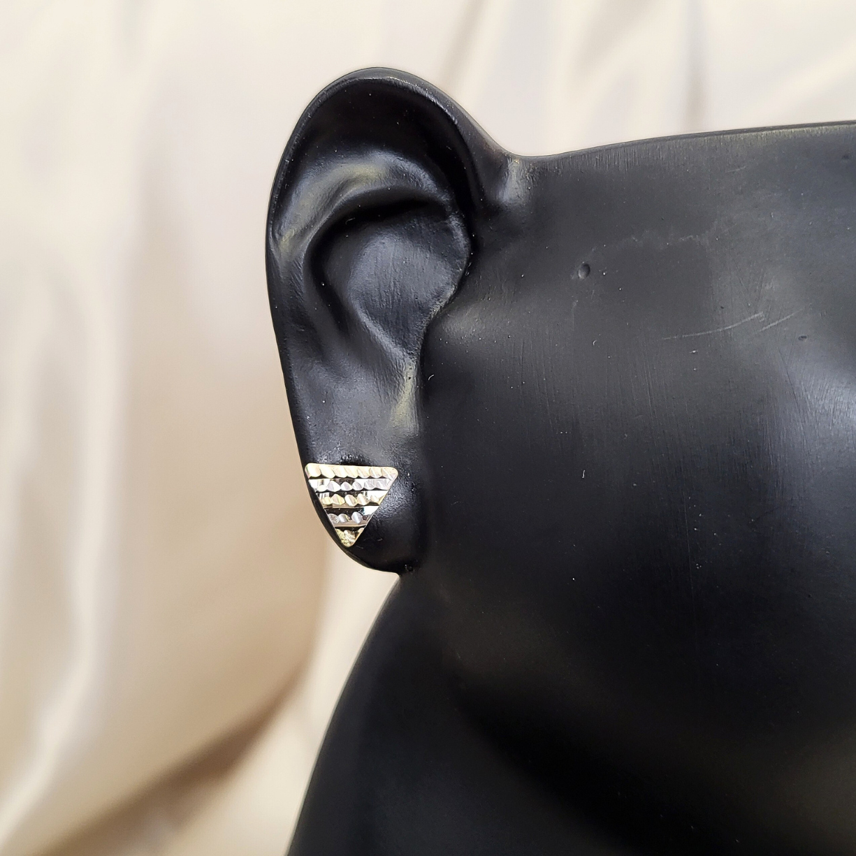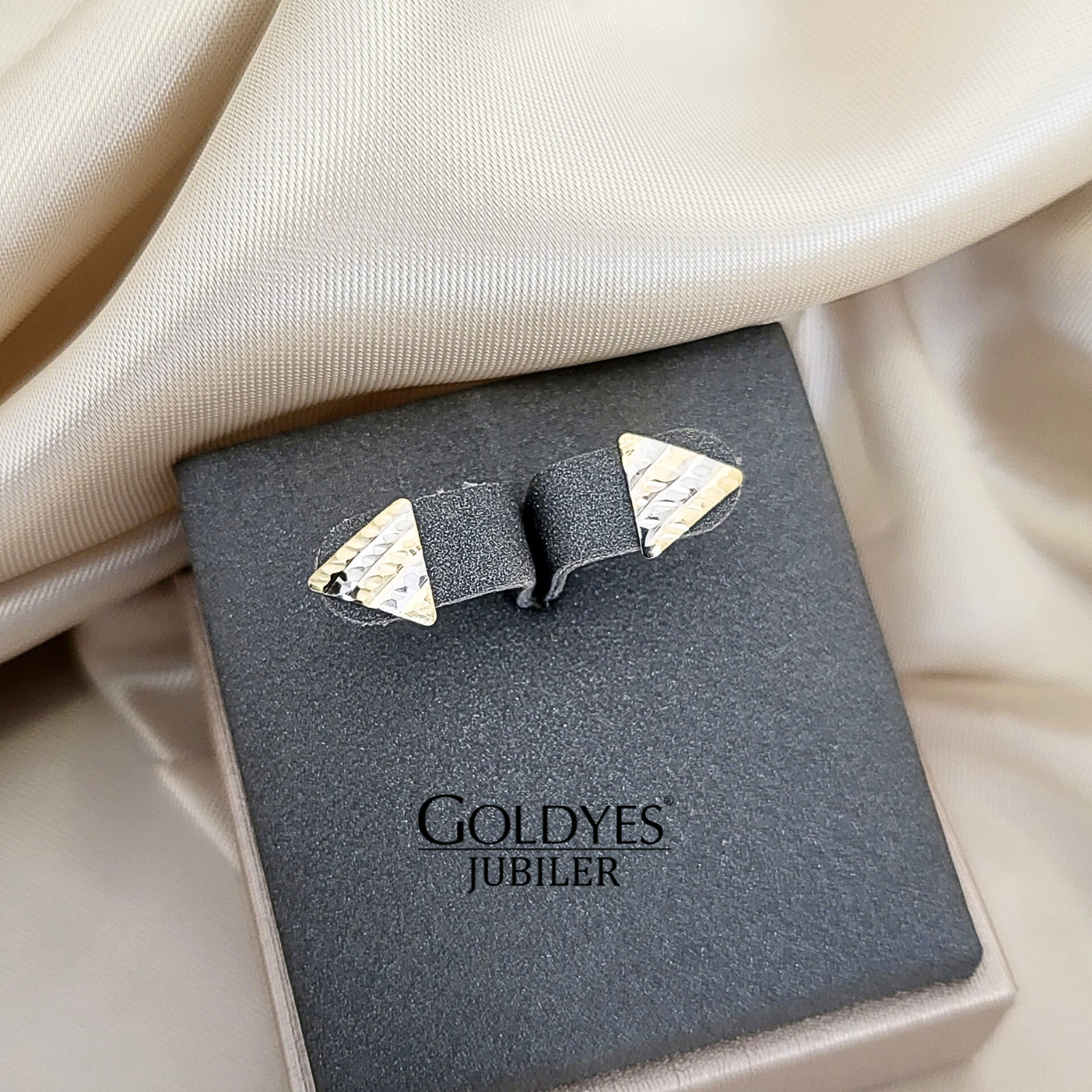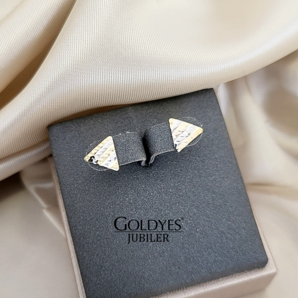 Złote kolczyki trójkąty diamentowane dwukolorowe próby złota 585 14k. Piękna biżuteria, która doda blasku i elegancji każdej stylizacji.