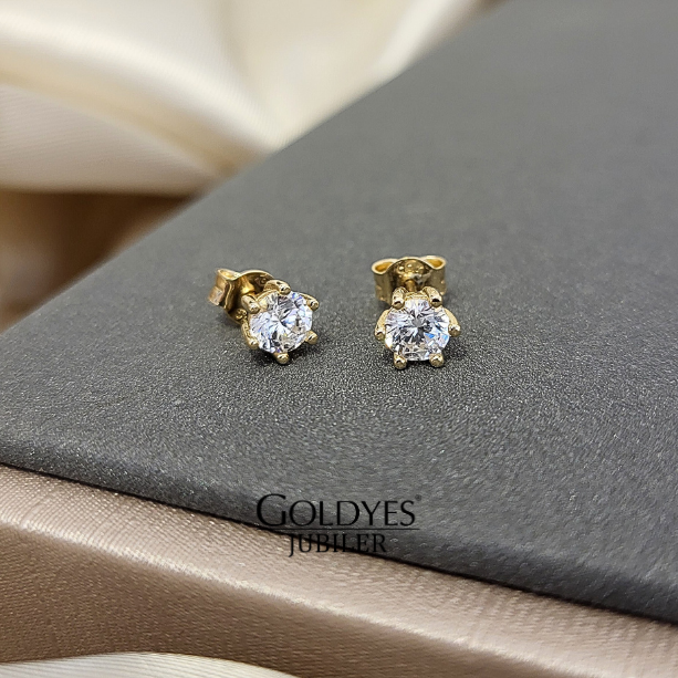 Złote kolczyki zawieszką komplet z cyrkoniami próby złota 585