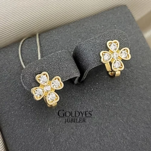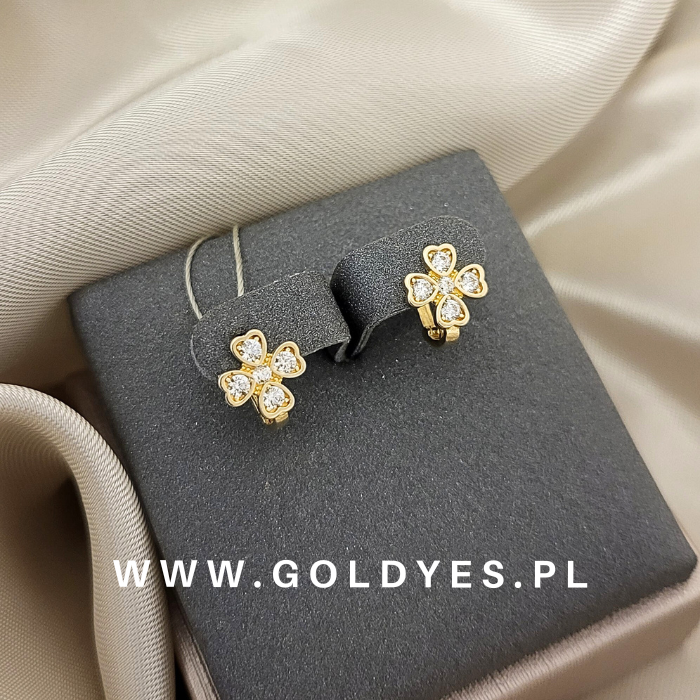 Złote kolczyki dziecięce z cyrkoniami kwiaty próba złota 585