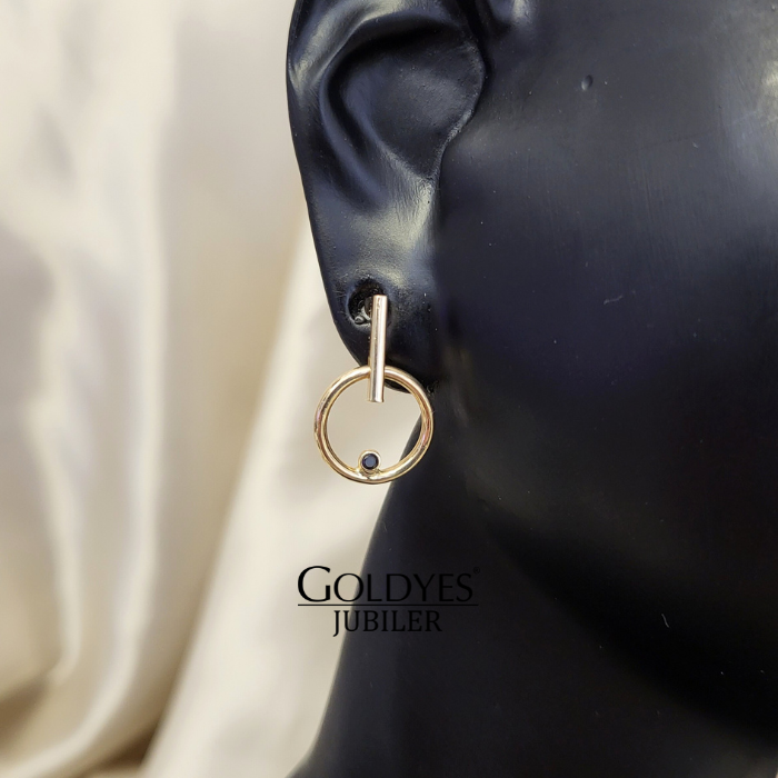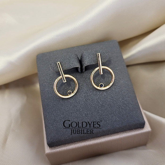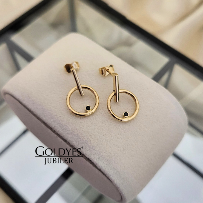 Złote kolczyki dziecięce z czarną cyrkonią