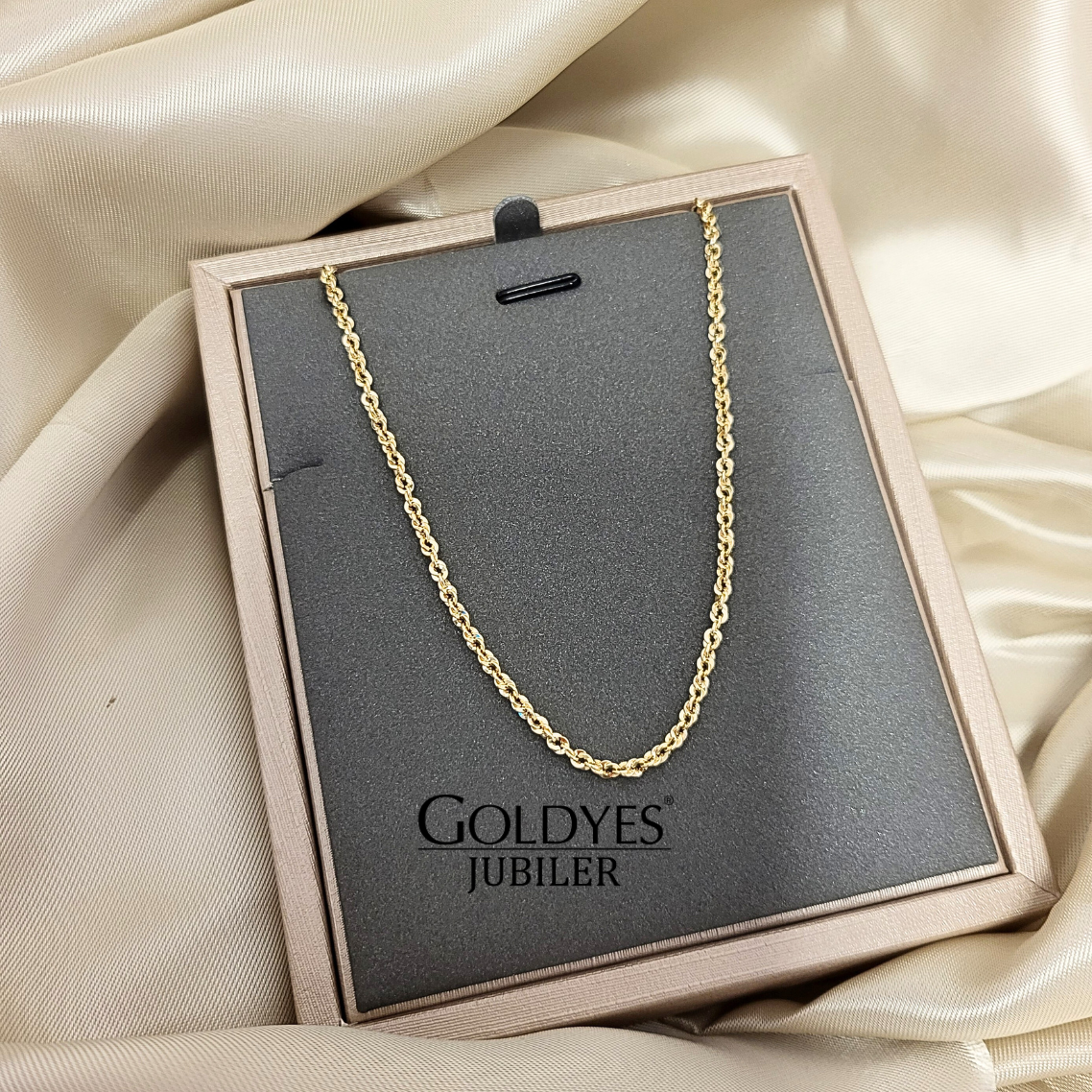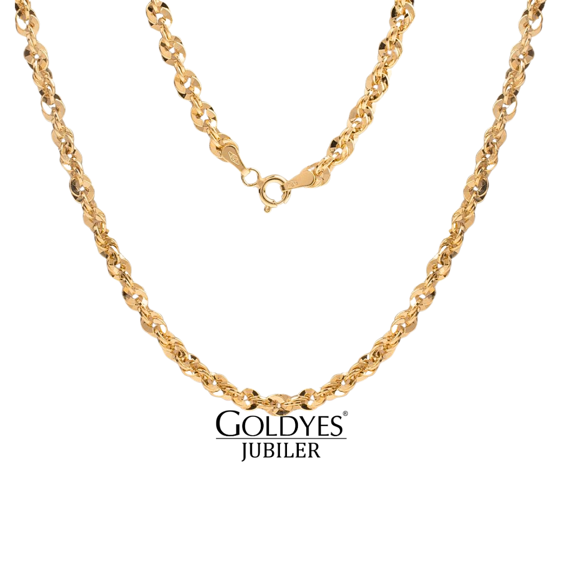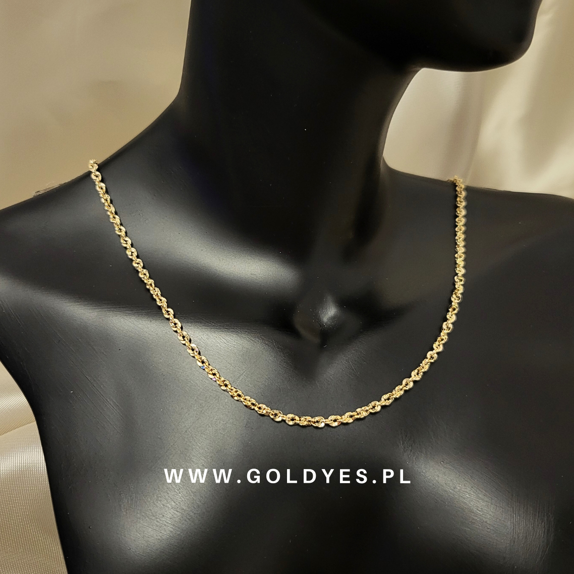 Złoty łańcuszek damski wykonany z kordyjki z próbą złota 585 (14k). Elegancki dodatek, który podkreśli każdą stylizację.