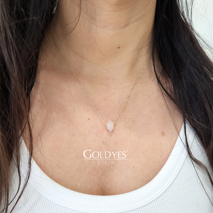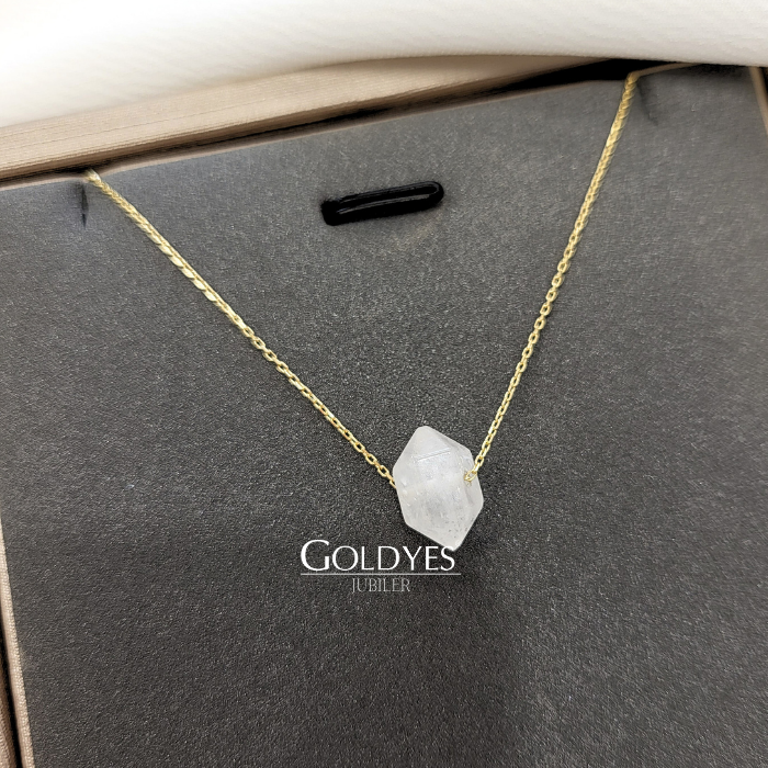 Złoty damski łańcuszek naszyjnik celebrytka kwarc biały próby złota 585