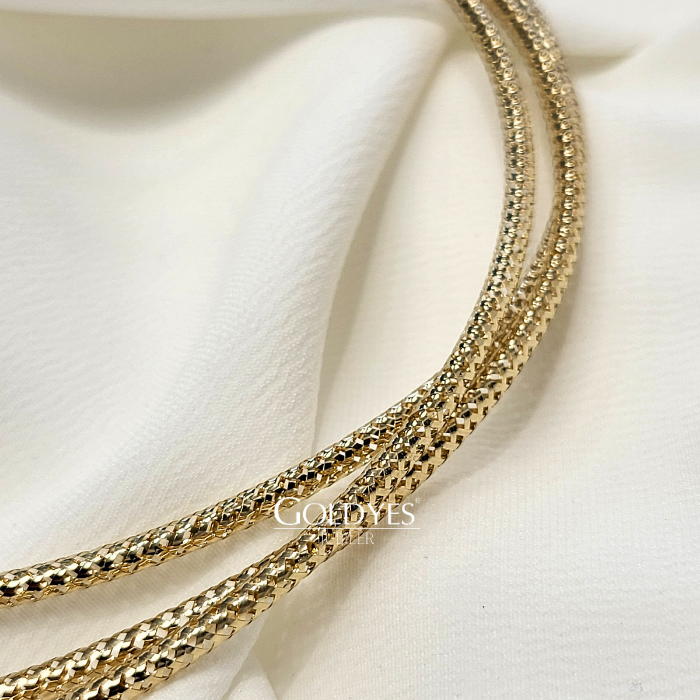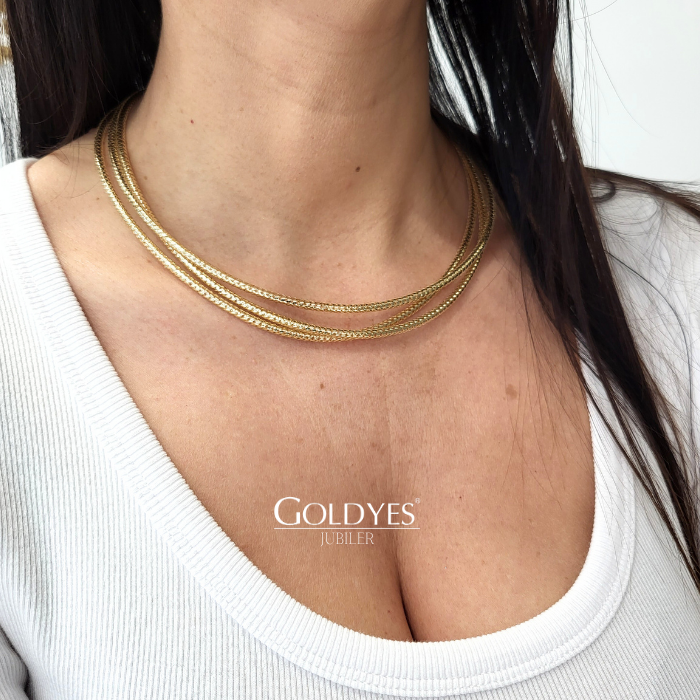 Złoty damski łańcuszek naszyjnik szeroki pusty potrójny elastyczny jak guma okrągły