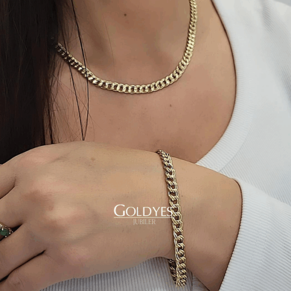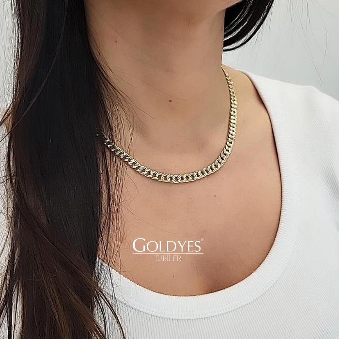 Złoty damski łańcuszek naszyjnik szeroki pusty