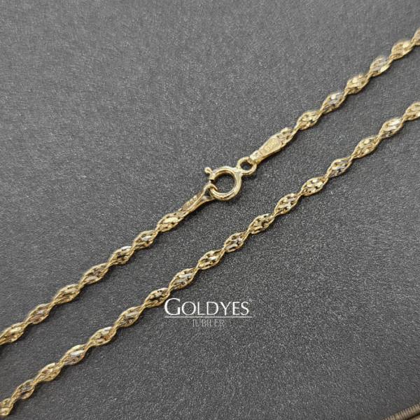Złoty damski łańcuszek naszyjnik o splocie singapur dwukolorowy