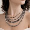 Złoty łańcuszek naszyjnik hematyt złote kulki próba złota 585