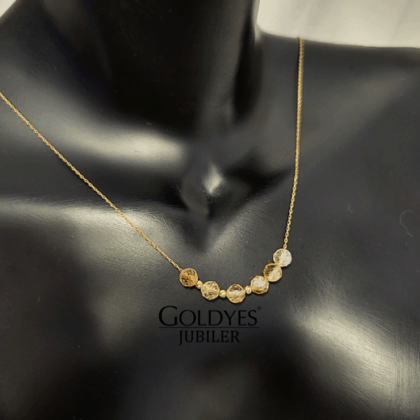 Złoty naszyjnik łańcuszek celebrytka z cytrynem i diamentowanymi kulkami