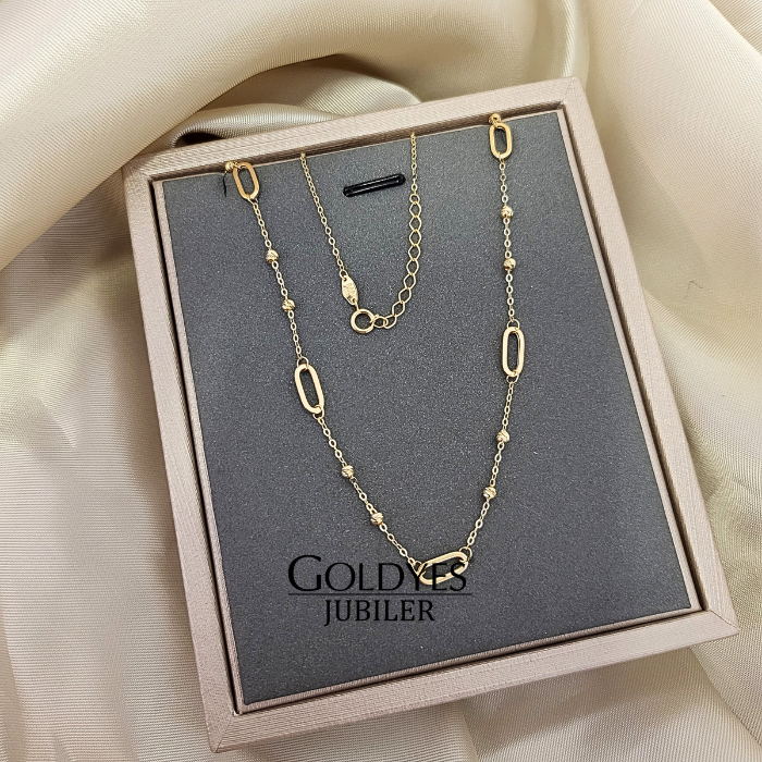 Złoty naszyjnik łańcuszek z kuleczkami z próby 585 (14k). Doskonały dodatek do każdego stroju, idealny na co dzień oraz na specjalne okazje.