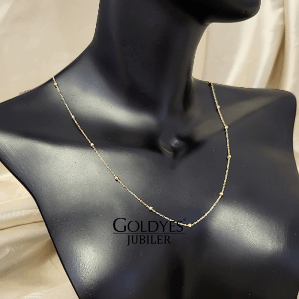 Złoty naszyjnik łańcuszek z kuleczkami z próby 585 (14k). Doskonały dodatek do każdego stroju, idealny na co dzień oraz na specjalne okazje.