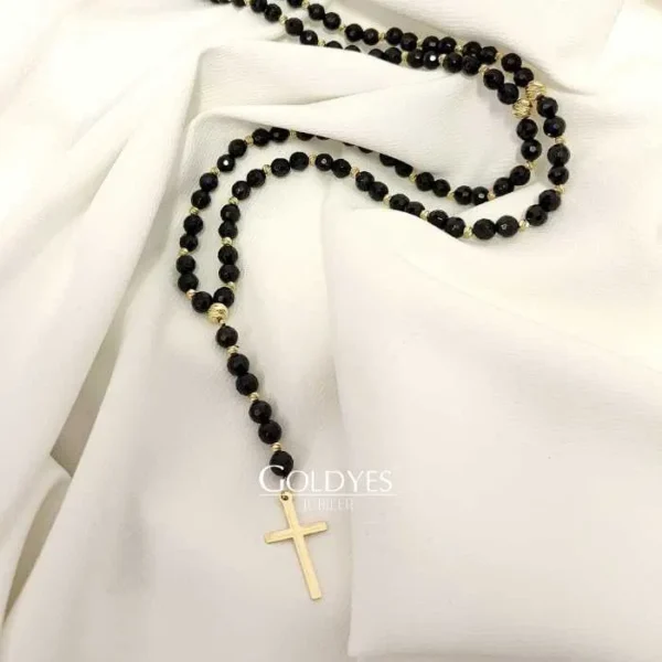 Ekskluzywny różaniec męski z onyksów naszyjnik marki GOLDYES