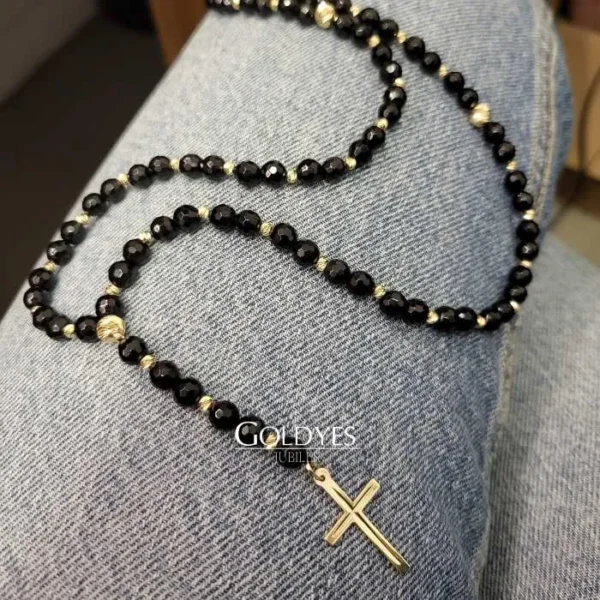 Ekskluzywny różaniec męski z onyksów naszyjnik marki GOLDYES