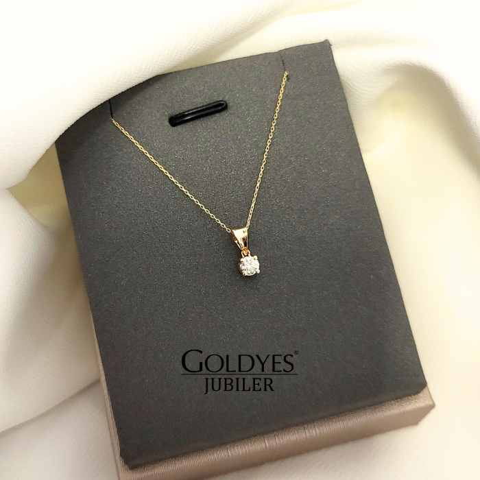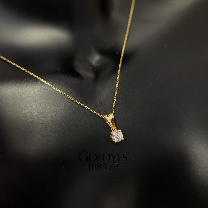 Wyjątkowy łańcuszek naszyjnik wykonany (łańcuszek 585) (zawieszka 750) złoto żółte z delikatną zawieszką z naturalnym DIAMENTEM O MASIE 0,15 CT