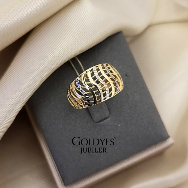 Złoty pierścionek dwukolorowy diamentowany próby złota 585