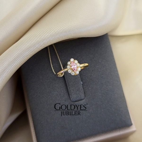 Złoty pierścionek z cyrkoniami na Komunię Świętą próba złota 585