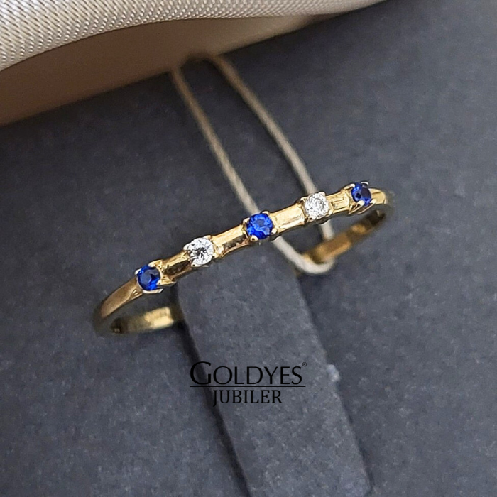 Złoty pierścionek z cyrkoniami nieskończoność próba złota 585