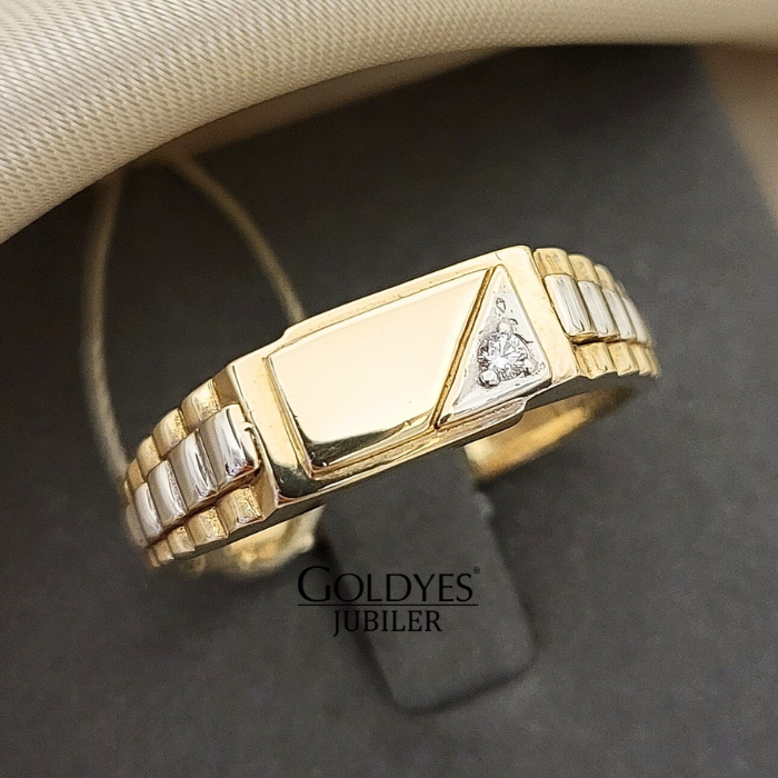 Złoty sygnet dwukolorowy próby złota 585